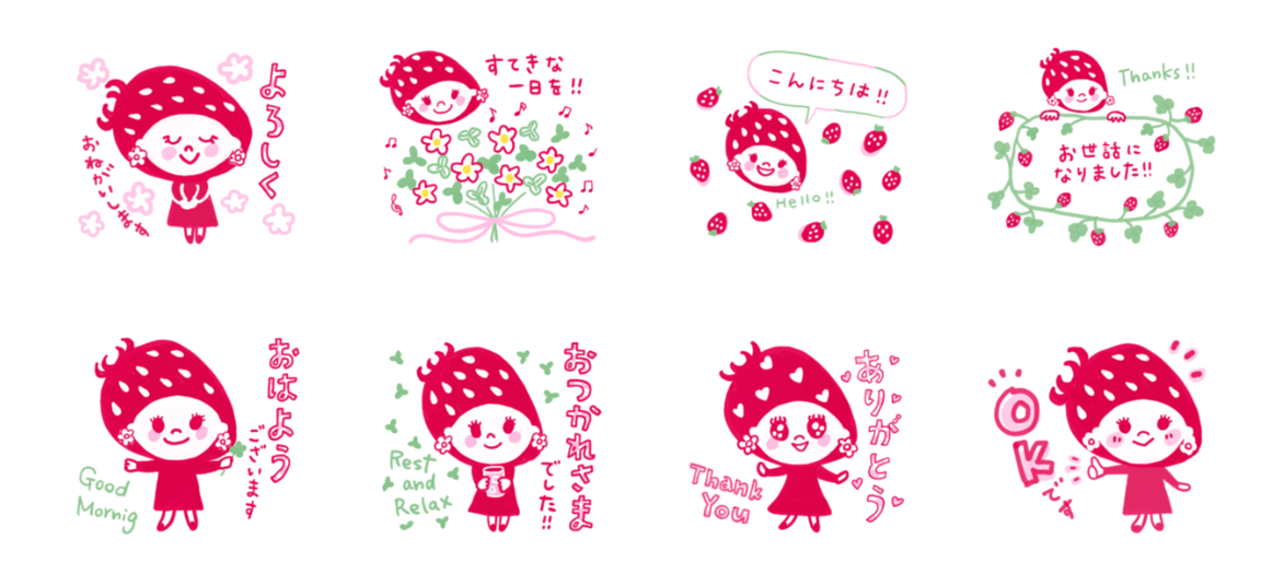 なかはた農園ではオリジナルキャラクター「いちごちゃん」のLINEスタンプ販売しています♪